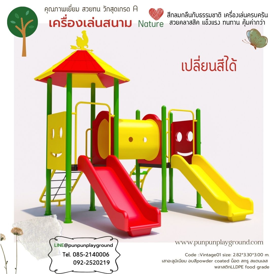 - Vintage-style playground designed and produced in Thailand 100% by PUN PUN PLAYGROUND AND TOYS CO., LTD.